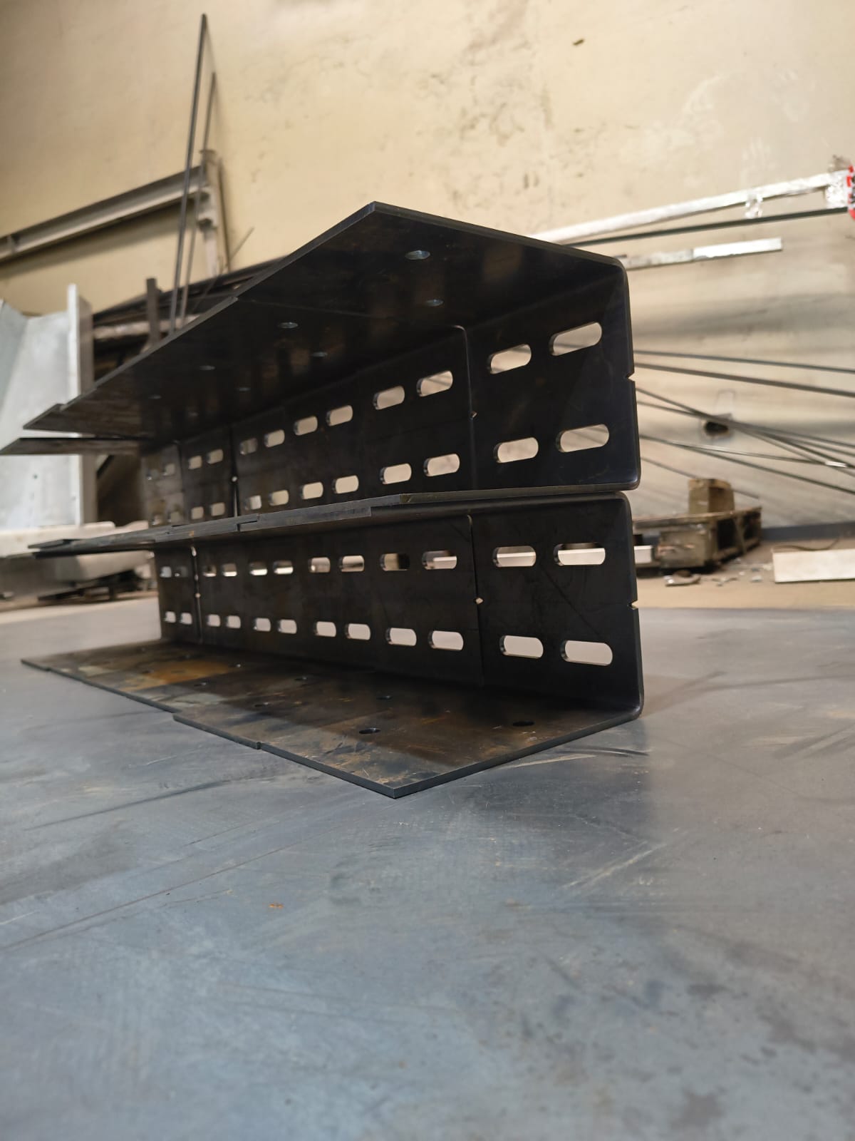 Perfil estructural fabricado en acero, conformado a partir de plancha mediante plegado y mecanizado de precisión.